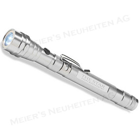 Teleskop Taschenlampe mit 3 hellen weissen LED-Birnen, lässt sich stufenlos bis zu 56.5cm ausfahren. Mit einem flexiblem magnetischem Kopf 360 Grad anpassbar inkl. Clip.